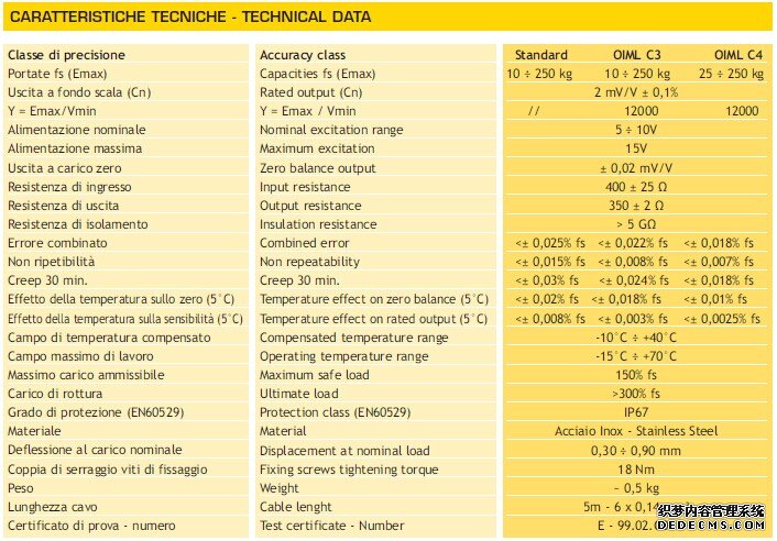 意大利NBC Elettronica稱重傳感器部分型號介紹: