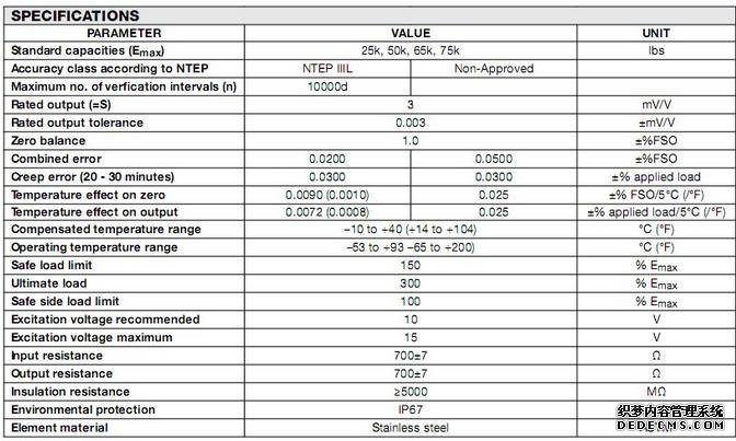 34499:  5103-B10-50k-30P1 50,000lb 30ft 3mV/V 700 OHM WW NTEP IIIL 10m FM IP67 Klh廣州南創(chuàng)電子科技有限公司