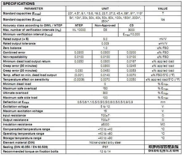 84153: DEB 9223-B10-125k 125000lb 40 ft RTI 3mv/v 700 Ohm WW NTEP IIIL 10 M FM SSTKim廣州南創(chuàng)電子科技有限公司