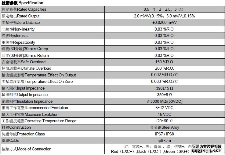 額定輸出Rated Output 2.0 mV/V±0.15%;3.0 mV/V±0.15%5hC廣州南創(chuàng)電子科技有限公司