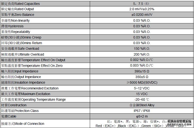 額定輸出:2.0 mV/V±0.25%d8M廣州南創(chuàng)電子科技有限公司