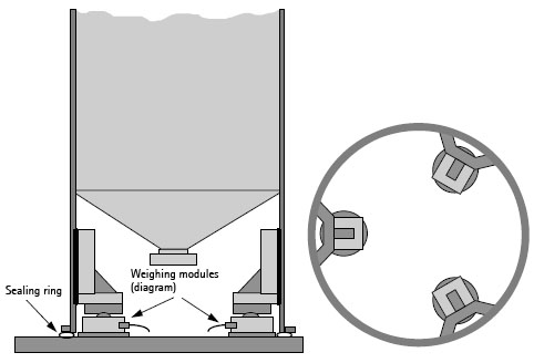 實踐中通常發(fā)現(xiàn)圓形立罐的外殼一般達(dá)到底部,以保證整個結(jié)構(gòu)的穩(wěn)定性,此時需要特殊的安裝方式正確地安裝傳感器。下圖顯示用傳感器來測量的這一結(jié)構(gòu)的原理,這一方案即通過它將重量導(dǎo)入傳感器。當(dāng)然稱重模塊也包含抬升保護。即使結(jié)構(gòu)的小的抬升已足以使整個重量導(dǎo)入傳感器。所以在此結(jié)構(gòu)中需要一圓形密封圈來密封,它非常柔軟不足以產(chǎn)生附加力。ZoZ廣州南創(chuàng)電子科技有限公司