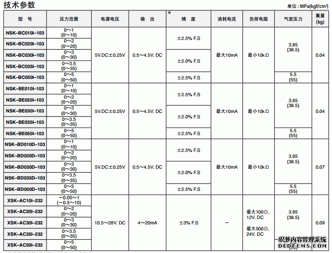 日本鷺宮NSK型壓力傳感器產(chǎn)品技術(shù)參數(shù)圖:BSh廣州南創(chuàng)電子科技有限公司