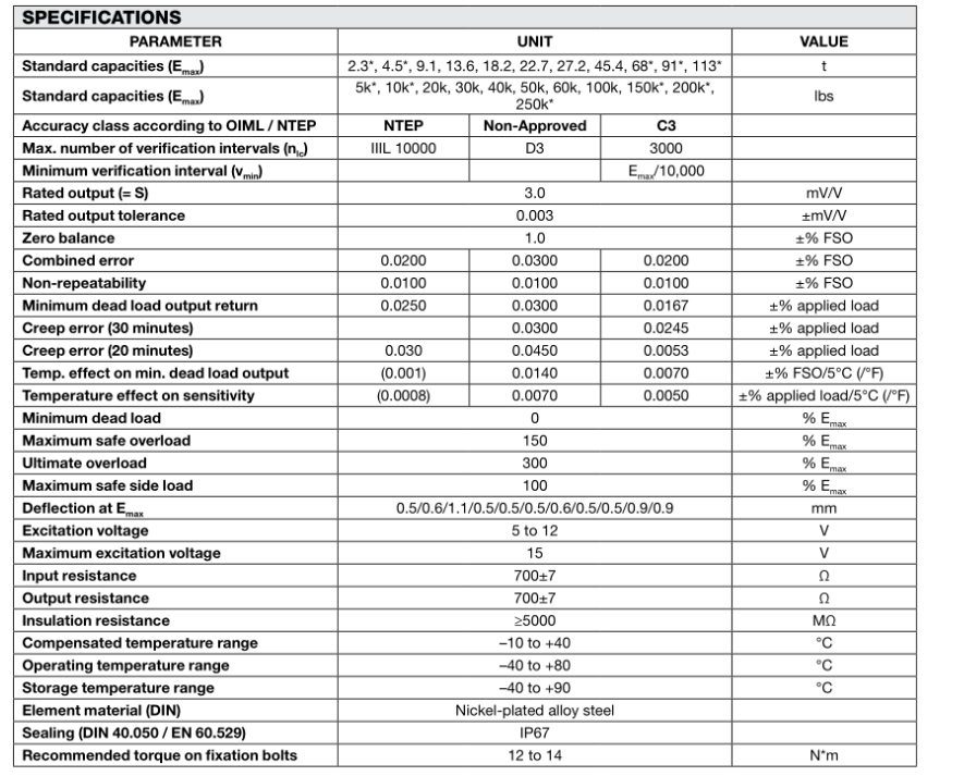 84150: DEB 9223-B10-50k 50000 lb 40 ft RTI 3mv/v 700 Ohm WW NTEP IIIL 10 M FM SST aXi廣州南創(chuàng)電子科技有限公司
