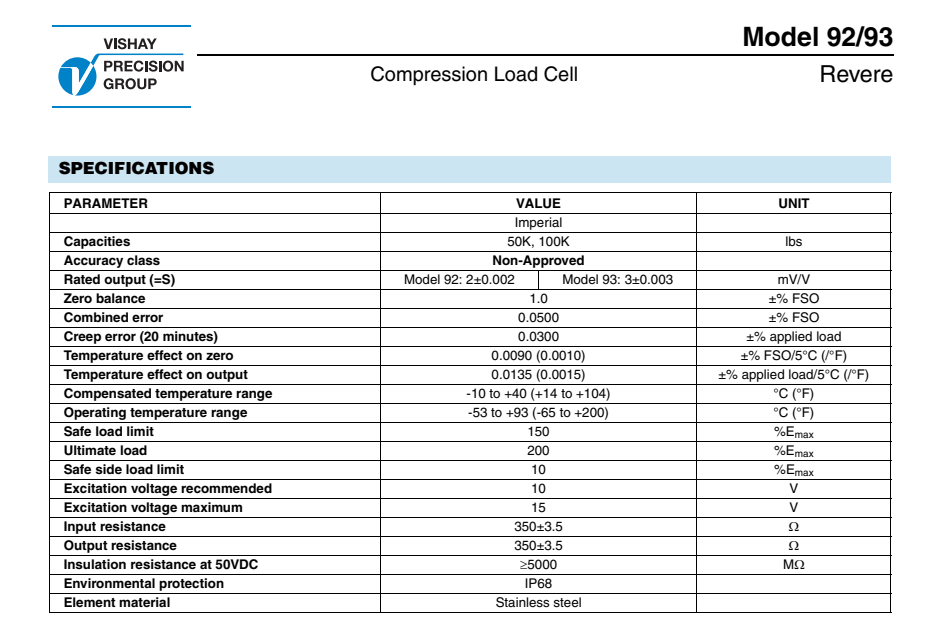 美國vishay Revere稱重傳感器93-50klbs產(chǎn)品技術(shù)參數(shù):NqD廣州南創(chuàng)電子科技有限公司