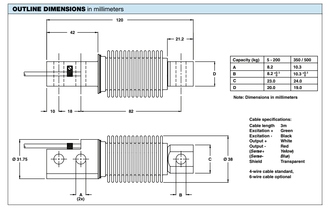 21466: Load Cell,SBM 363-B10-500 -20P1 500 lb 20ft RTI 3mV/V 350 OHM WW NTEP IIIL 10 S FMWQd廣州南創(chuàng)電子科技有限公司