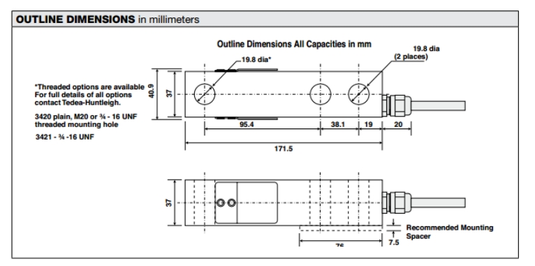 特迪亞稱(chēng)重傳感器3420-2000LB產(chǎn)品尺寸:Ylu廣州南創(chuàng)電子科技有限公司