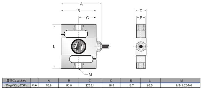美國(guó)傳力BSA-25MT2稱重傳感器產(chǎn)品技術(shù)參數(shù):