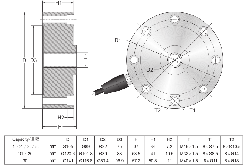 美國傳力DBSL-TJ-1t稱重傳感器產(chǎn)品技術參數(shù):