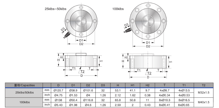 量程范圍:25Klb,50Klb,100KlbuNu廣州南創(chuàng)電子科技有限公司