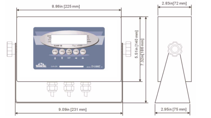 美國傳力TranscelTI-500ESS稱重顯示儀表尺寸圖:jNL廣州南創(chuàng)電子科技有限公司