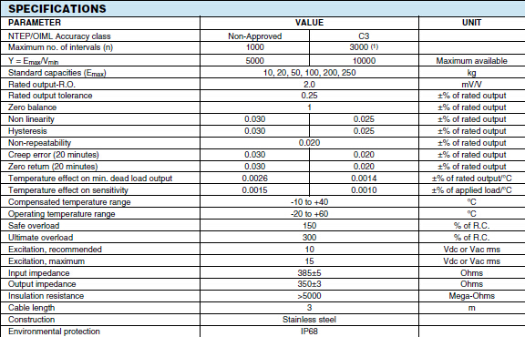 美國世銓Celtron HBB系列稱重傳感器所有量程如下: wEX廣州南創(chuàng)電子科技有限公司