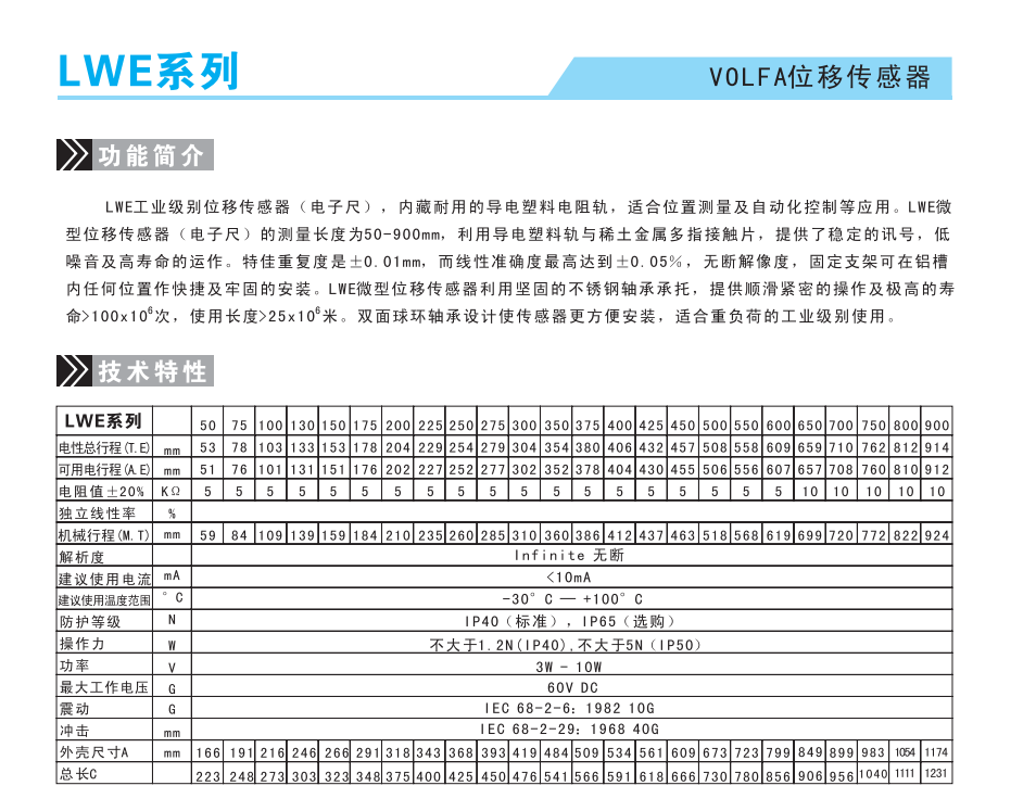 德國Volfa LWE-50位移傳感器更多產(chǎn)品詳細(xì)資料請點擊Volfa位移傳感器,進(jìn)入頁面可查找Volfa傳感器型號、Volfa位移傳感器技術(shù)參數(shù)選型資料,以及德國Volfa電子尺具體安裝技術(shù)指導(dǎo)信息。BuW廣州南創(chuàng)電子科技有限公司