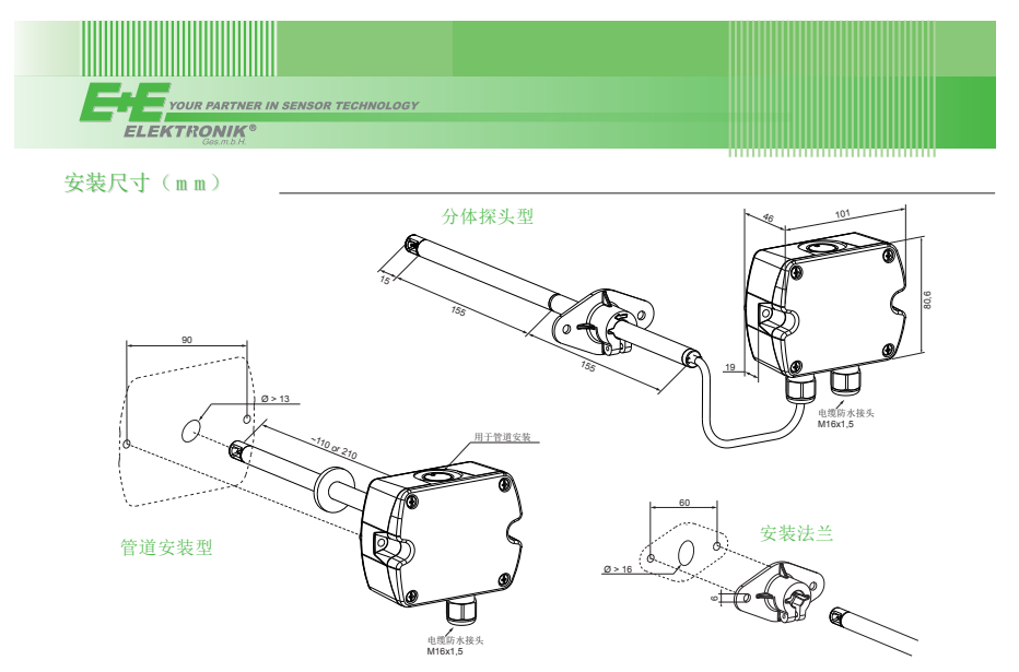 奧地利E+E ee650風(fēng)速探頭安裝尺寸圖:t1o廣州南創(chuàng)電子科技有限公司