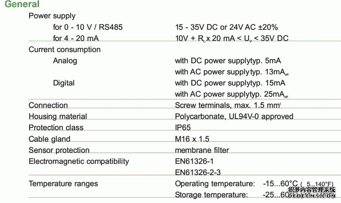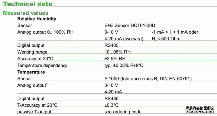奧地利E+E EE160系列溫濕度變送器技術(shù)參數(shù)圖:CZ6廣州南創(chuàng)電子科技有限公司