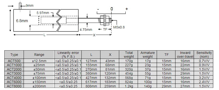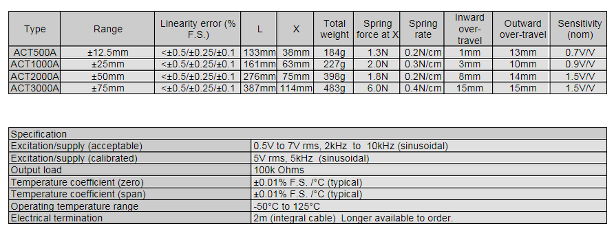 英國RDP GT5000RA位移傳感器系列位移傳感器所有量程如下:555廣州南創(chuàng)電子科技有限公司