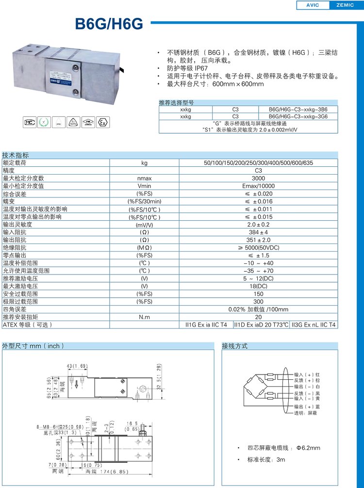 美國ZEMIC傳感器B6G-C3-500kg-3B6產(chǎn)品技術(shù)參數(shù):AuD廣州南創(chuàng)電子科技有限公司