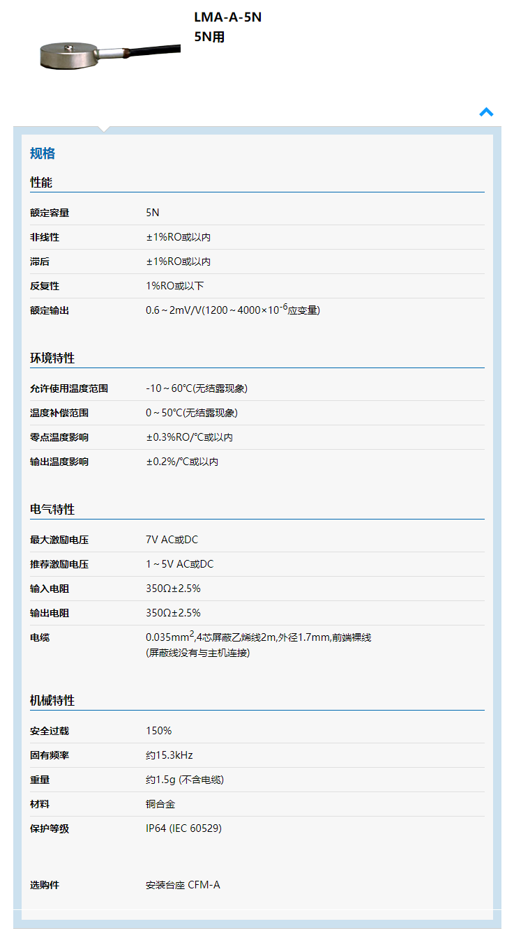 7mU廣州南創(chuàng)電子科技有限公司日本Kyowa 共和傳感器相關(guān)型號量程:7mU廣州南創(chuàng)電子科技有限公司LMC-A-5KN,LMC-A-10KN,LMC-A-20KN,LMC-A-50KN