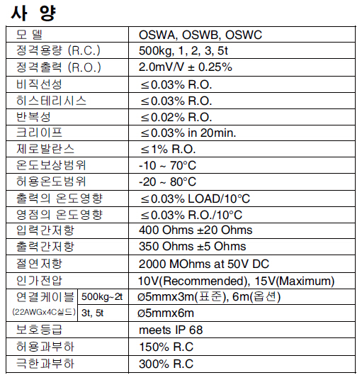 韓國Bongshin OSW-500kg技術(shù)參數(shù):