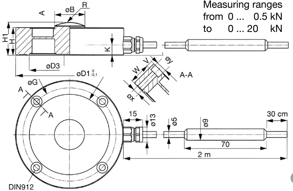 AEP稱重傳感器xuE廣州南創(chuàng)電子科技有限公司德國BURSTER 波司特稱重傳感器尺寸圖: