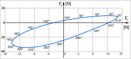 示例:曲軸中力的極坐標(biāo)圖,力分量與旋轉(zhuǎn)角度成反比