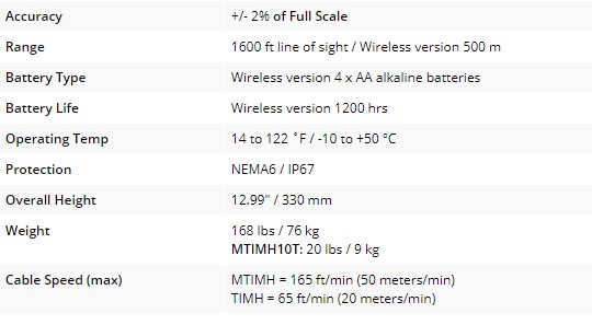 TIMH型號(hào)-電纜的最大線速度為65英尺/分鐘(20米/分鐘)