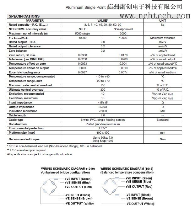 模型1010是單點(diǎn)負(fù)荷細(xì)胞designed for直接安裝低成本的低容量、平臺(tái)秤。