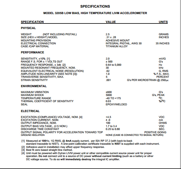 美國Dytran3205B加速度傳感器規(guī)范圖: