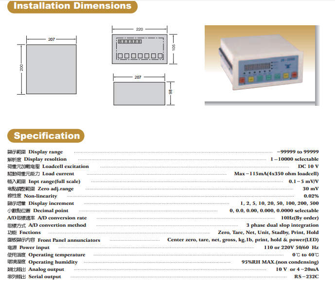 產(chǎn)品描述:臺灣JIHSENSE JS-2000_JS-2000顯示器系高功能高精度顯示器,本顯示器針對應(yīng)變規(guī)式感測器所設(shè)計,有絕佳的穩(wěn)定性,類比信號可提供+/- 10V或4-20mA輸出,A-D採用最精確的雙斜率積分方式,每秒鐘取樣10次,本顯示器所有設(shè)定工作均由前面版的按鍵輸入,特別設(shè)計的總重修正功能,可讓使用者精確調(diào)整重量,使校正工作快速精確。