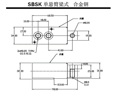 美國Transcell稱重傳感器SBSK-50kg產(chǎn)品尺寸: