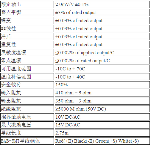 美國傳力Transcell BAB系列稱重傳感器所有量程如下: 7D4廣州南創(chuàng)電子科技有限公司