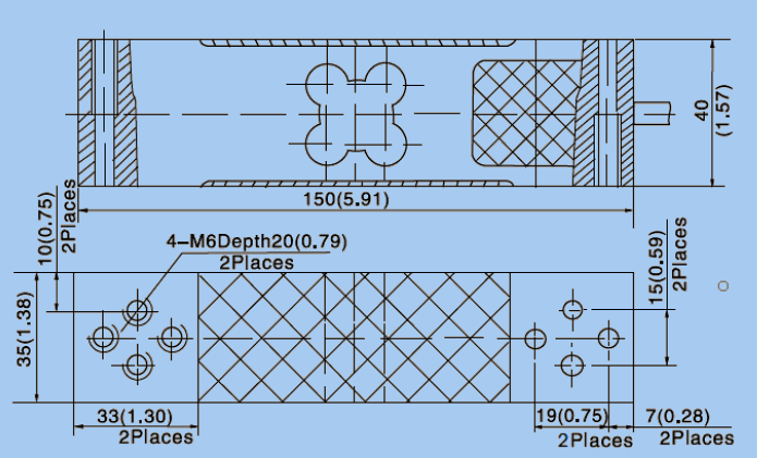 L6E-C3-50KG-2B,ZEMIC L6E-C3-100KG-2B稱(chēng)重傳感器平面圖: