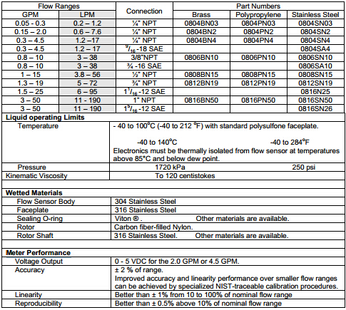 美國(guó)Proteus 800系列計(jì)量流量開(kāi)關(guān)的性能和規(guī)格: