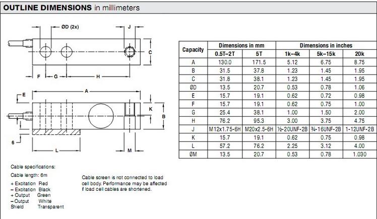 21469: Load Cell,SBM 363-B10-1.5 K-20P1 1,500 lb 20ft RTI 3mV/V 350 OHM WW NTEP IIIL 10 S FM