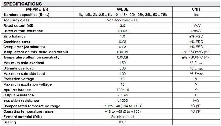 33737: 65083S-5k-5117H 5000lb 20ft Sensortronics 2mV/V 350 OHM NTEP III 5m WS FM IP66/68