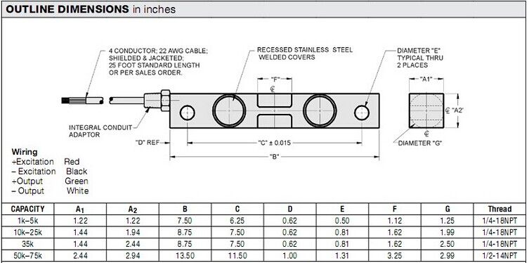 21469: Load Cell,SBM 363-B10-1.5 K-20P1 1,500 lb 20ft RTI 3mV/V 350 OHM WW NTEP IIIL 10 S FM