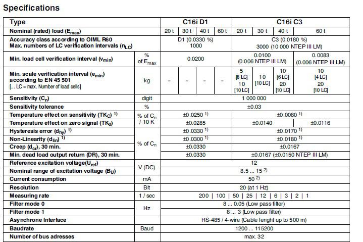 C16iC3稱重傳感器系列額定容量 C16iC3/20T C16iC3/30T C16iC3/40T C16iC3/60T