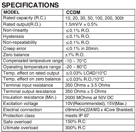 韓國Bongshin CCDM-50T稱重傳感器技術(shù)指標(biāo):