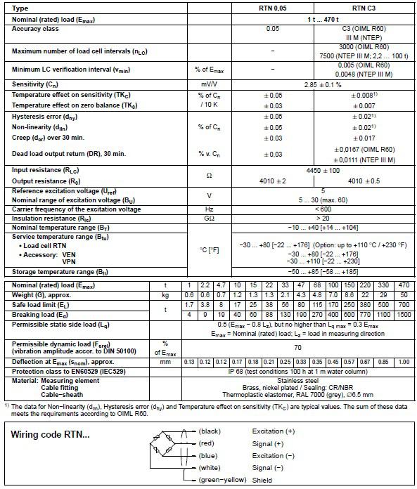 德國HBM RTNC3/33T稱重傳感器技術(shù)指標(biāo):