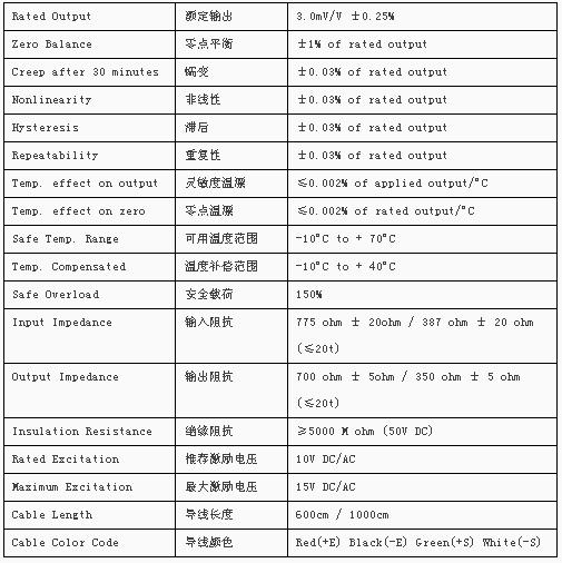 美國(guó)傳力DBSL-30T稱(chēng)重傳感器相關(guān)技術(shù)參數(shù):