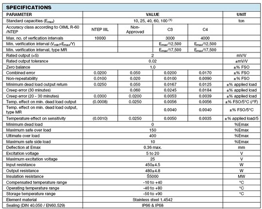 21607: 5223-B10-100K-40P1 100,000 lb 40ft RTI 3mV/V 700 OHM WW NTEP IIIL 10 M FM