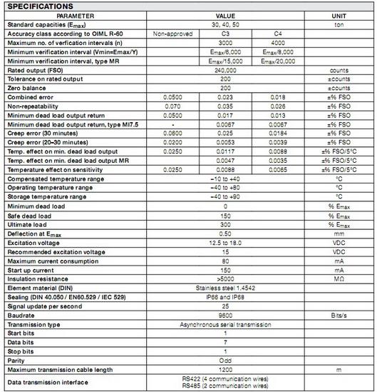 17333: 9103-B10-50K-30P1 50,000 lb 30ft RTI 3mV/V 700 OHM WW FM IP67 NTEP IIIL