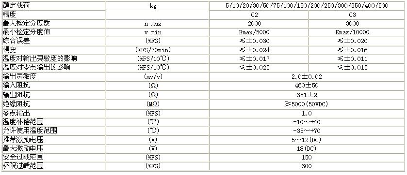 HM11-C3-350kg-3B6-SC稱重傳感器技術參數(shù):