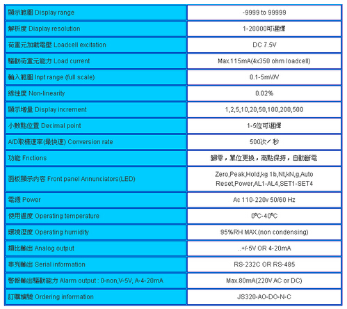 臺灣JIHSENSE JS-2200稱重顯示控制器參數(shù)圖: