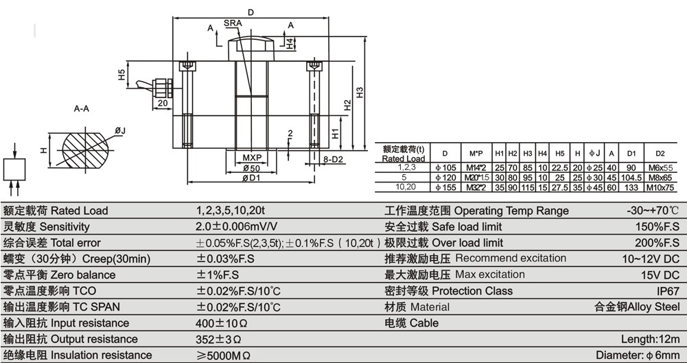 LFSC-A-10t傳感器工作溫度范圍: -30?+70℃