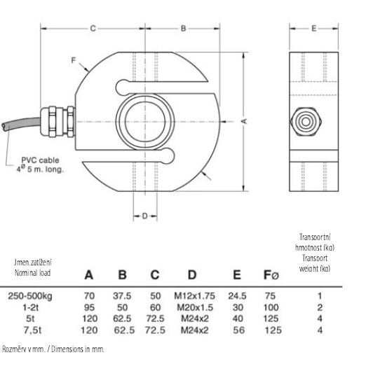 通過TE12,TE20,TE24 250千克:2000N。 OIML