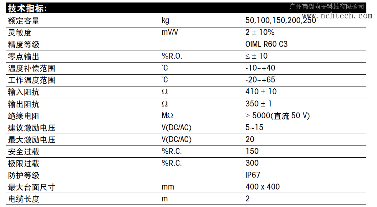 Mettler Toledo傳感器技術(shù)指標(biāo):