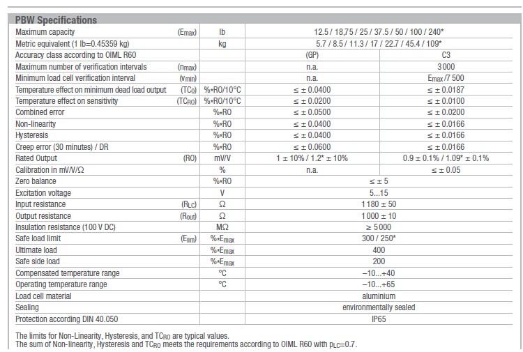 德國(guó)FLINTEC稱重傳感器PBW-18.75lb容量由12.5 lb至240磅