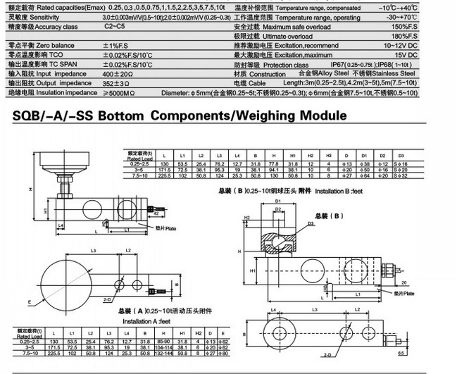 SQB-7.5T傳感器溫差穩(wěn)定度: 每3°C變化 , 電壓漂移0.03%