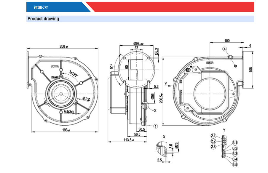 K3G355-PJ75-02 ebmpapst 后向離心風機 交流風機